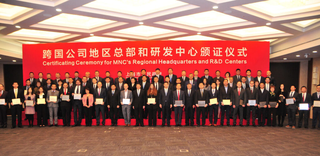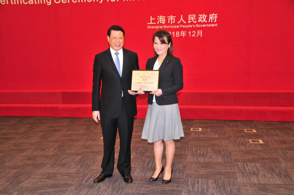 2018年12月6日上午,上海市市政府舉行頒證儀式,市委副書記、市長(zhǎng)應(yīng)勇向第29批30家跨國(guó)公司地區(qū)總部和15家研發(fā)中心頒發(fā)了證書,副市長(zhǎng)許昆林在頒證儀式上致辭,市商務(wù)委主任尚玉英主持儀式。