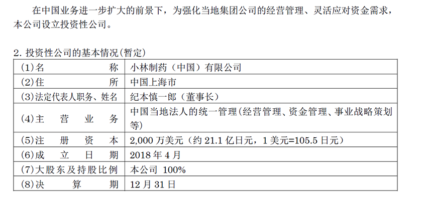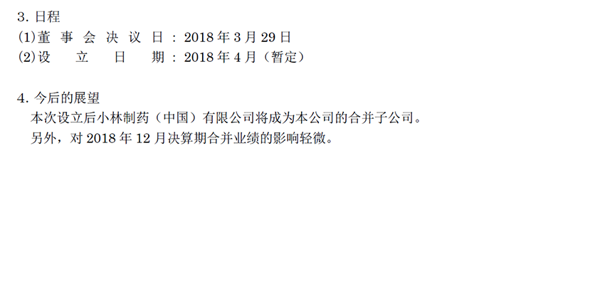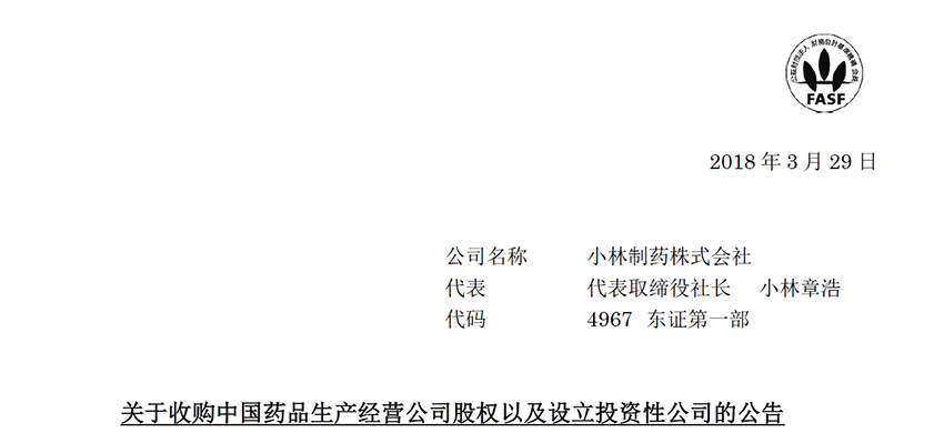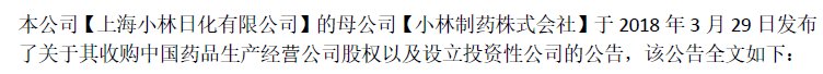 關(guān)于小林制藥在中國收購中國藥品生產(chǎn)經(jīng)營公司股權(quán)以及設(shè)立投資性公司的公告